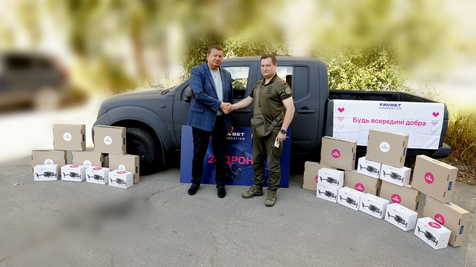 До 24-ої річниці FAVBEТ підрозділи Головного управління розвідки отримали новий пакет допомоги. За підтримки FAVBET Foundation розвідникам передали 12 дронів Mavic 3 Pro та 12 FPV-дронів для виконання бойових завдань на фронті. Всього 24 — по одному за кожен рік діяльності компанії.