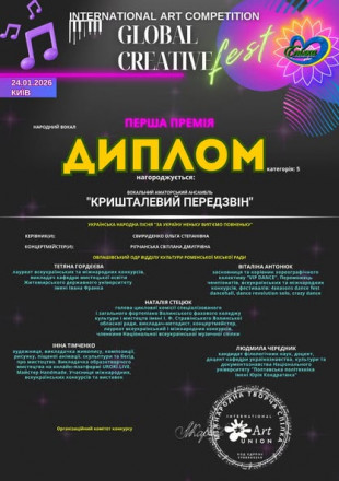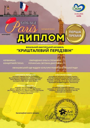Аматорський вокальний ансамбль «Кришталевий передзвін» Овлашівського об’єкту дозвіллєвої роботи виборов перші місця у двох міжнародних мистецьких конкурсах.