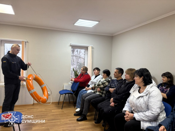 У Роменському та Конотопському районах офіцери-рятувальники громад провели тренінги для представників місцевого самоврядування. Разом зі старостами й працівниками сільрад говорили про безпечну поведінку на зимових водоймах.