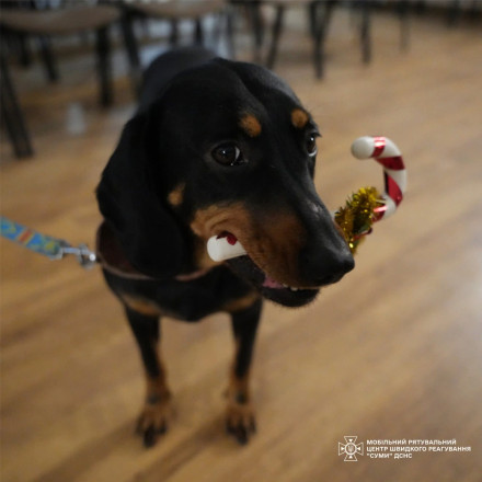 Чотирилапі рятувальники Мобільного рятувального центру швидкого реагування «Суми» ДСНС України також долучилися до святкових привітань.