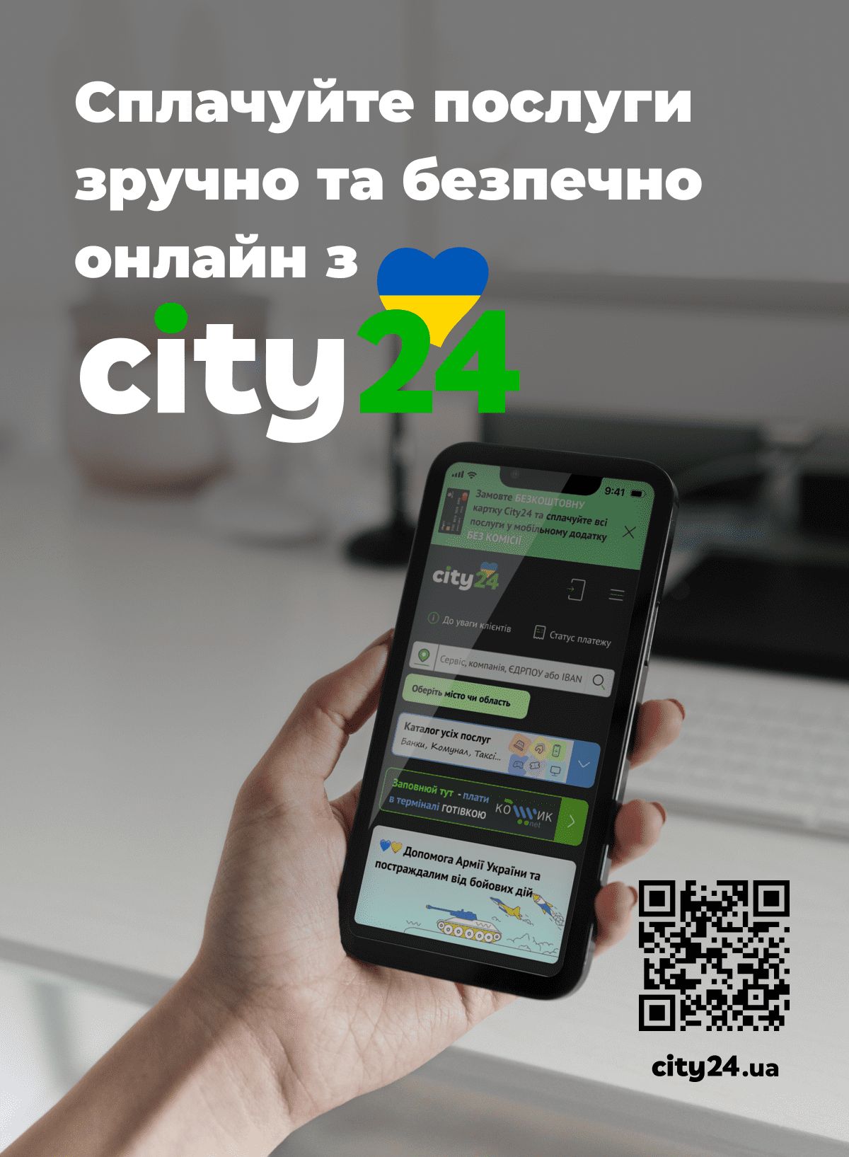 City 24 пропонує своїм клієнтам більше 3 тисяч видів послуг, забезпечуючи можливість оплати мобільного рахунку, інтернету, телебачення, кредитних зобов’язань, комунальних послуг та багато іншого. Зрозумілий інтерфейс платіжної системи дозволяє швидко та легко здійснювати оплату, навіть новачкам.