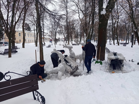 Свята офіційно «на паузі»: у сквері Шевченка завершили розбір святкових локацій. Комунальники прибрали інвентар, який протягом зими створював настрій містянам, та відправили його на зберігання до наступного сезону.