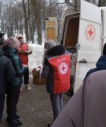 26 і 27 лютого евакуйовані мешканці 5-кілометрової зони — сіл Білокопитове, Заруцьке та Будівельне Глухівської громади — отримали гуманітарну допомогу у вигляді продуктових наборів від громадської організації «Шосткинська міськрайонна організація Товариства Червоного Хреста України» (голова — Наталія Коновалова).