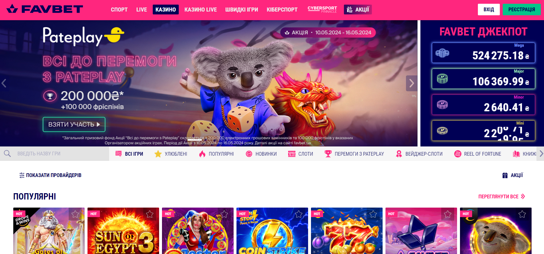 Колекція слотів у Favbet Casino включає сотні назв від відомих провайдерів, таких як Pragmatic Play і Spinomenal. Гравці можуть насолоджуватися класичними слотами, сучасними відео слотами з якісною графікою і захоплюючими бонусними раундами.