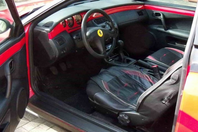 Салон також має помітні сліди віку та зношення. Втім, на кермі встановлено яскраво-жовтий логотип Ferrari, який і створює головний ефект цієї «переробки».