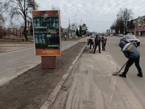 Також з самого ранку комунальники продовжують благоустрій у громаді. Зокрема, прибирають центральні вулиці міста від пилу та дрібного сміття.