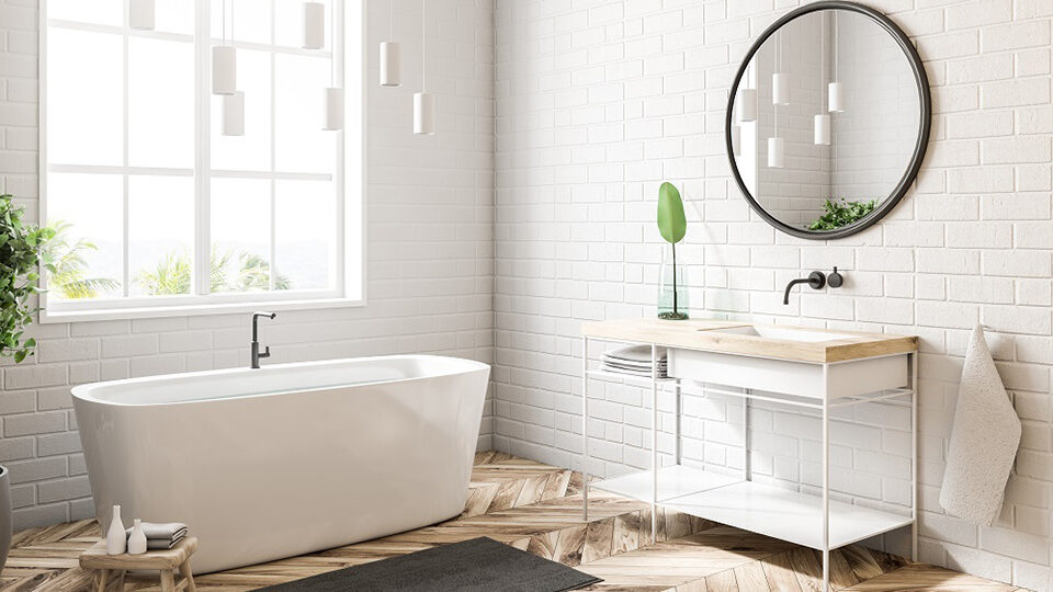 При всей привлекательности этой чаши, под ней будет накапливаться влага, которую сложно убрать. Вода будет попадать на пол через щель между задним бортиком и стеной. Чтобы там убрать, придется подлезать рукой за ванну, стоя на коленях. Поэтому важно устанавливать отдельностоящую сантехнику на расстоянии 15-20 см от стены, а лучше — 30-40 см. Пространство необходимо, чтобы подчеркнуть форму чаши и комфортно за ней ухаживать.