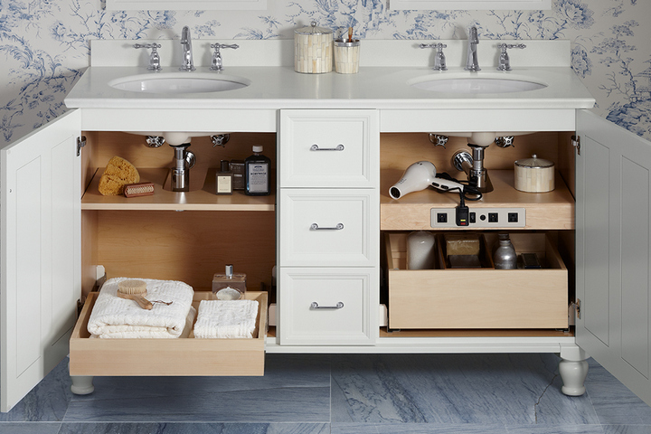 Если ваш список выглядит так же, то вы забыли о подключении зеркала с подсветкой и системы принудительной вентиляции. А еще где-то нужно заряжать электрическую щетку и бритву. Мы советуем установить по две розетки в каждой зоне ванной комнаты: возле умывальника, в техническом шкафу (там удобно заряжать пылесос), а также в постирочном блоке. Дополнительную розетку стоит установить внутри тумбы под раковиной или в зеркальной галерее, чтобы заряжать мелкие электроприборы. Если планируете делать декоративную подсветку, не забудьте предусмотреть электровывод для ее подключения.