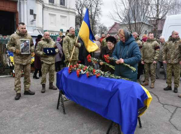 На вулиці стояла похмура погода і здавася, що сама природа сумувала та прощалася із воїном, що стримував ворожий наступ з перших хвилин великої війни. Віддати останню шану захиснику біля храму Трьох Святих Анастасій прийшли рідні, близькі, друзі, побратими, а також представники влади і центру комплектування, пише Глухів.інфо.