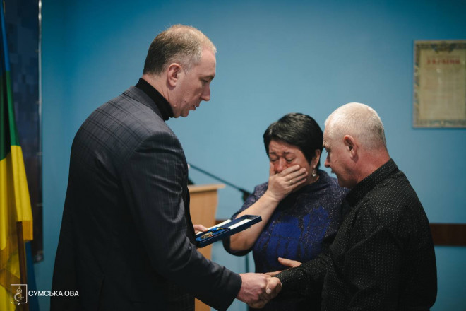 Під час робочої поїздки до Роменського району очільник області зустрівся з рідними загиблих захисників України та передав високі державні відзнаки, присвоєні указами Президента — на жаль, посмертно.