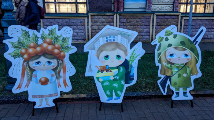 «Моя локація починається з вулиці. Ростові фігури, які Ви певне зустріли по дорозі — це орнамтики, народжені під час війни. Вони мають великі добрі очі і позитивно налаштовані на перемогу. Серед них є справжні герої – це, наприклад, принцеска – навідниця САУ із Сумщини. Є також наш сумський командир, конотопська відьма, калинка, альтаночка. Усі вони мають свою історію та дарують гарний настрій і надію, а також допомагають нашим збройним силам», — говорить сумська художниця.