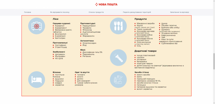 Відправити посилку можна з будь-якого відділення Нової пошти. Компанія доставить допомогу власним коштом. Для цього необхідно зазначити: