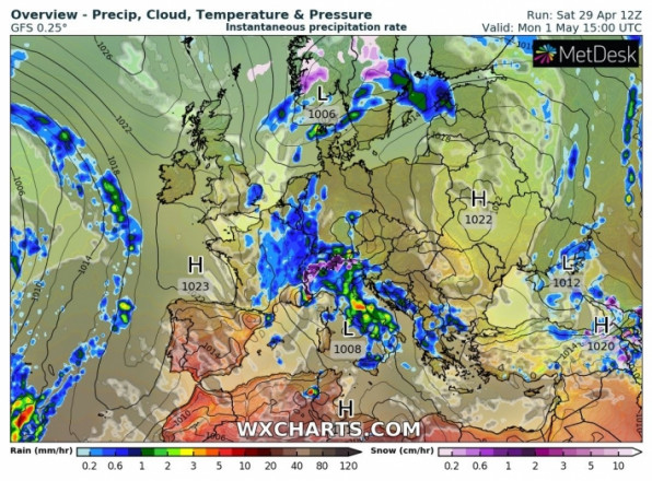 Погоду на Сумщині 1 травня визначатиме: вночі атмосферний фронт, вдень — східна периферія антициклону.