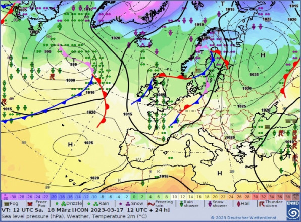 18 березня: мінлива хмарність, без опадів. Вітер північно-східний, 7-12 м/с. Температура повітря вночі -4..+1°, вдень +4..+9°.