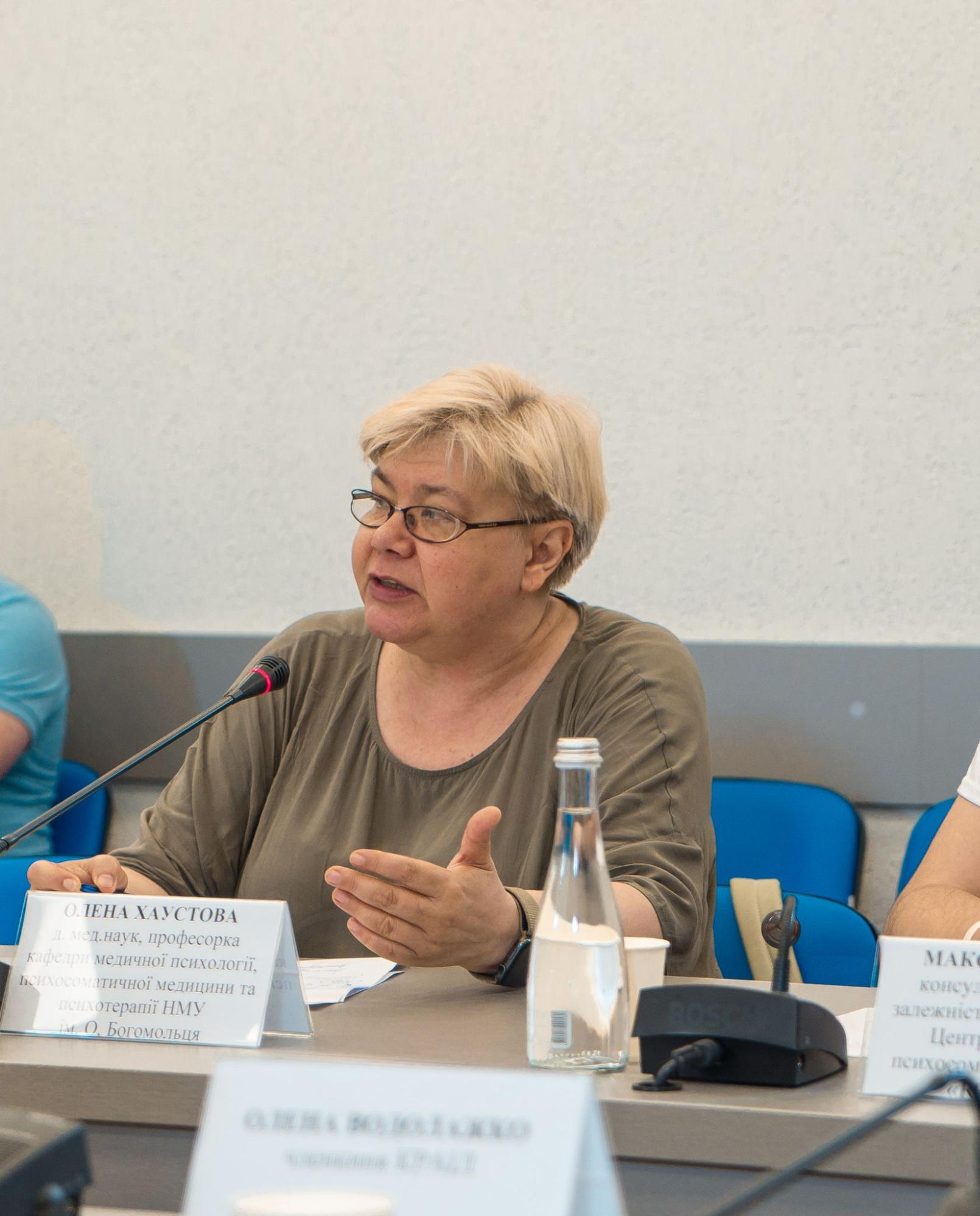 Олена Хаустова, доктор медичних наук, професорка кафедри медичної психології, психосоматичної медицини та психотерапії НМУ ім. О. Богомольця