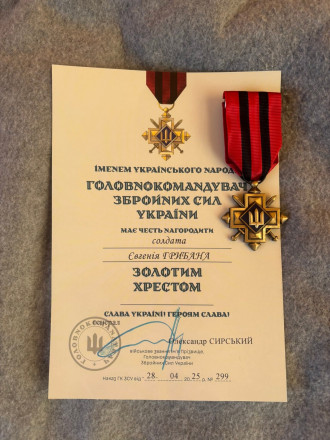 «Золотий Хрест» – нагорода, що загартована у вогні. Її отримують лише ті рядові та сержанти, чиї дії на полі бою допомогли втримати позиції або успішно виконати надскладне завдання. Отримавши відзнаку, Євгеній зробив щемливу заяву: він присвятив свій успіх Валерію Литвину, побратиму з позивним «Пітон».