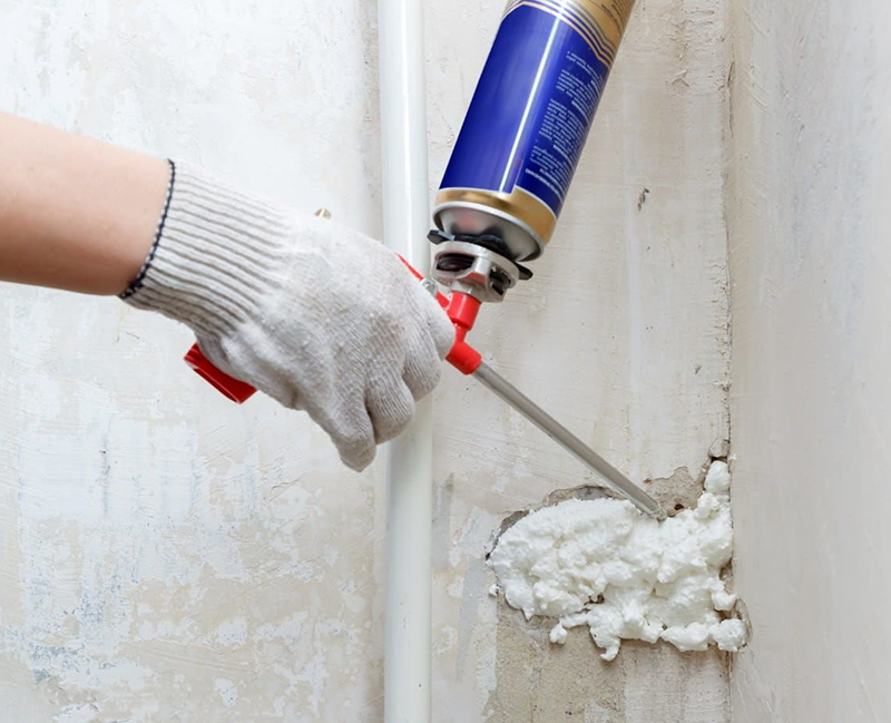 - Побутова піна. Виготовляється в невеликих одноразових балонах. Для нанесення є спеціальна трубка, яка допомагає використовувати речовину. Варто пам’ятати, що піна швидко висихає, після чого її використати неможливо. Працювати монтажною піною треба у випадках, коли всю роботу можна завершити одразу.
