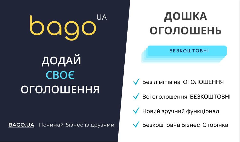 BAGO.UA – это популярная украинская платформа для размещения объявлений, которая объединяет покупателей и продавцов, арендаторов и арендодателей, а также других пользователей, ищущих товары или услуги. Если вы хотите подать бесплатное объявление, то БАГО — это доска объявлений, которая вам нужна!
