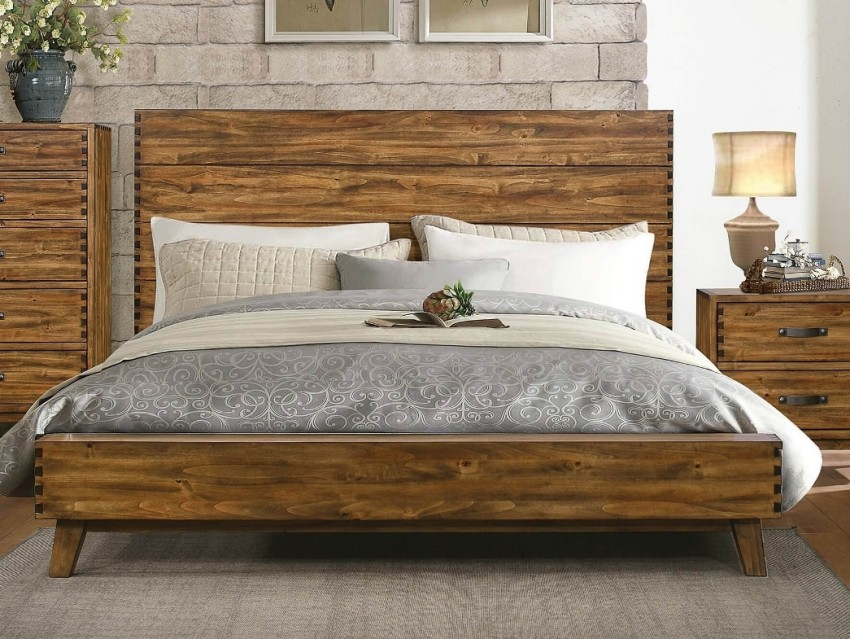 Минимализм и лофт подчеркнут кровати из массива дерева. Здесь не нужны никакие лишние детали — чем проще конструкция, тем лучше.