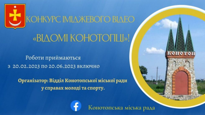 Відкритий конкурс іміджевого відео «Відомі Конотопці» має на меті популяризацію серед молоді історії та історичних постатей міста Конотоп і Конотопської громади, наголошують у міській раді.