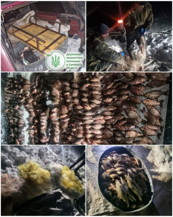 Державна екологічна інспекція у Сумській області продовжує систематичний контроль за дотриманням природоохоронного законодавства, в тому числі й правил рибальства, в усіх районах Сумщини. У ніч з 23 на 24 лютого 2026 року, під час одного з таких природоохоронних рейдів, екоінспектори спільно з правоохоронцями вкотре затримали браконьєрів.