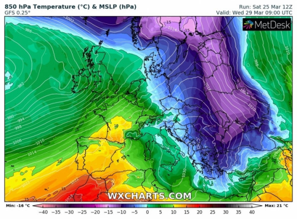 28 березня: хмарно з проясненнями, вночі без істотних опадів, вдень дощ. Вітер південно-східний, 7-12 м/с, місцями пориви 15-20 м/с. Температура повітря вночі +4..+9°, вдень +9..+14°.