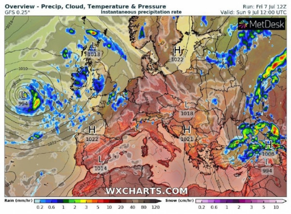 9 липня: мінлива хмарність, вночі короткочасний дощ, місцями значний, гроза, вдень без істотних опадів. Вітер північний, 7-12 м/с, пориви 15-20 м/с. Температура повітря вночі +13..+18°, вдень +21..+26°, по м.Суми вночі +16..+18°, вдень +23..+25°.
