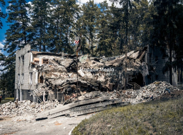 Одна будівля вже не підлягає ремонту. Замість неї купа цегли. А друге влучання — було в дах двоповерхового корпусу. Там вогнем знищений повністю горішній поверх, пише Кордон.медіа.