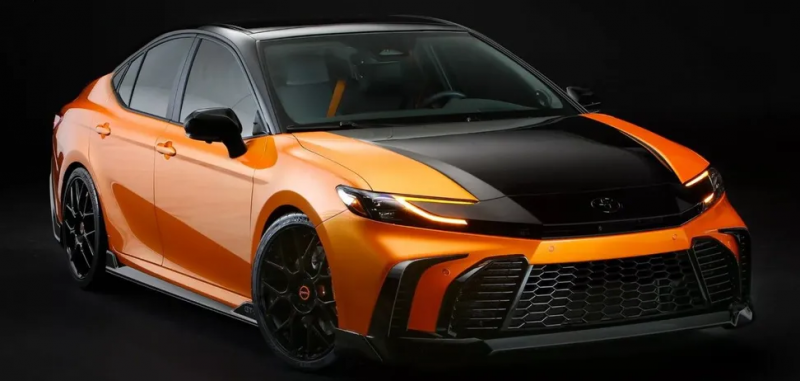 Тюнінг Toyota Camry XV80 охоплює безліч змін. Насамперед машина відрізняється від стандартного автомобіля стилістичними змінами. Виробник підготував особливий колір кузова Inferno Flare. Увагу привертають контрастний капот і чорні акценти.