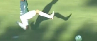 У Гондурасі гравець одним підкатом завдав двох важких травм опонентам Фото: кадр відео Брудний стрибок від Андре Орельяна Захисник місцевої команди Марафон Андре Орельяна Новости футбола