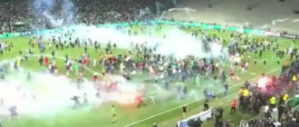 Фанати Сент-Етьєна влаштували погроми після вильоту команди з Ліги 1 Фото: кадр видео Вболівальники не пробачили Сент-Етьєну вильоту з Ліги 1 Уболівальники одного з Новости футбола