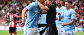 Екс-чемпіон світу з боксу «напав» на Голанна під час матчу АПЛ Фото: Getty Images Ерлінг Голанн та Террі Фленаган Манчестер Сіті з труднощами здолав Шеффілд Новости футбола