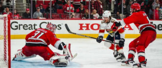 Флорида втретє обіграла Кароліну у плей-оф Фото: Getty Images Кароліна не змогла зупинити Флориду і в третьому матчі серії «Пантери» Новости хоккея