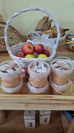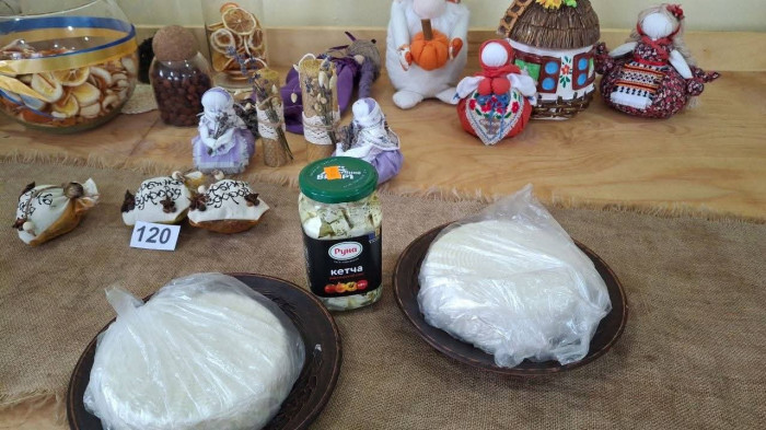 Поряд пропонували своє і місцеві господарі: на столах був домашній сир у прянощах, квашена капуста та запашні яблука. Кожна покупка – це внесок у спільну «копилку» для ЗСУ.