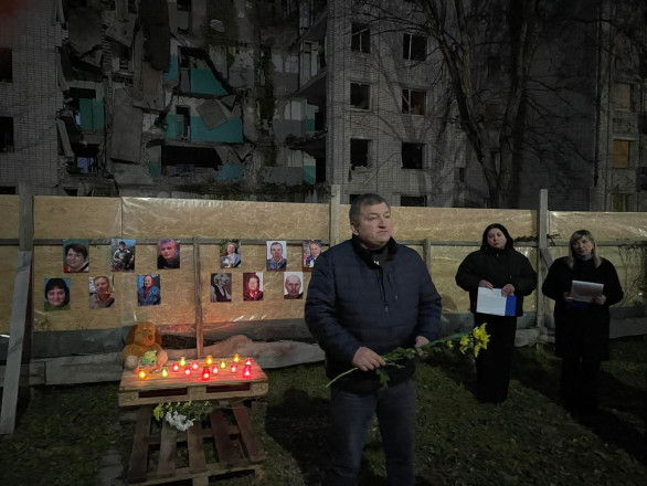 Серед обвалених стін і чорних порожнин, які досі нагадують про ту трагічну ніч, оживає пам’ять про невинні життя, обірвані війною. Кожен уламок тут – доказ несправедливості та болю, який довелося пережити громаді.