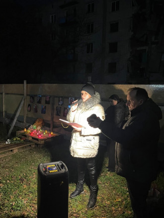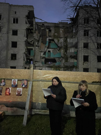 Селищний голова Сергій Мінаков разом із присутніми вшанував загиблих хвилиною мовчання та покладанням квітів. Він зазначив, що ці втрати назавжди залишаться раною в серці громади, адже кожна людина, яка загинула в цій будівлі, була частиною спільної історії та спільного болю.