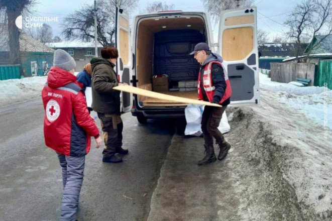 Волонтери Загону швидкого реагування Шосткинської міськрайонної організації долучились до відновлювальних робіт. На місці прильоту організували видачу плит ОSB та водонепроникних брезентів.