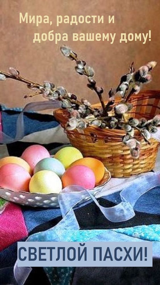 С прекрасным праздником Святой Пасхи! Желаю добра, света и мира! Пусть ваши мысли и действия будут только с хорошим посылом и во благо! Пусть окружают вас только добрые и светлые люди! Пусть дом будет полной чашей, где живут любовь, спокойствие и забота! Здоровья вам и вашим близким!