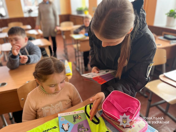 Окрему увагу співробітники поліції приділили використанню світловідбивних елементів на одязі та рюкзаках, які допомагають водіям завчасно помітити пішоходів у темну пору доби. Школярам продемонстрували спеціальні жилети та дали можливість їх приміряти. Зокрема юні слухачі отримали від поліцейських флікери для розміщення їх на одязі чи шкільних рюкзаках.