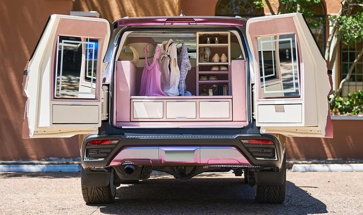 Ще оригінальнішим став багажник Lexus LX, адже його перетворили на шафу для одягу та взуття. Двері тепер складаються із двох половинок, які всередині прикрасили дзеркалами.