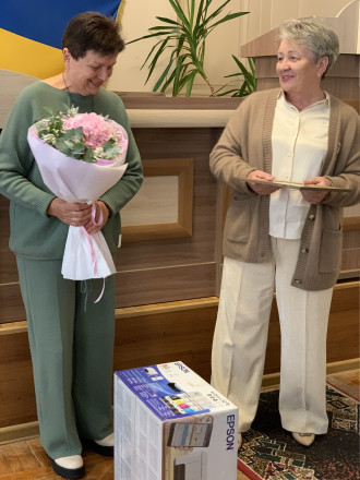 За сумлінну працю, професіоналізм та відданість своїй справі міський голова вручила Подяку колективу бібліотеки, яку отримала директор закладу Тамара Миколаївна Привалова в його особі.