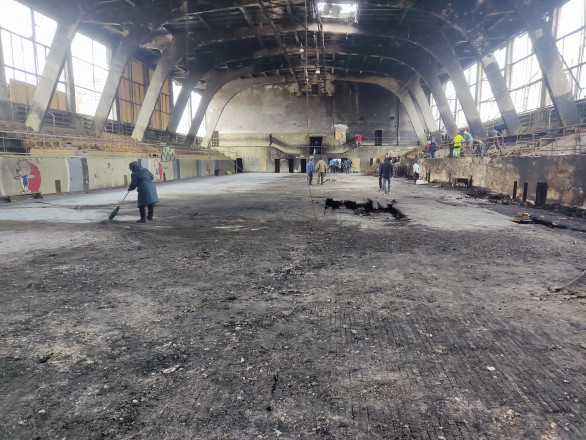 «Очі бояться-руки роблять. Майже все, що погоріло, та було порушено внаслідок бомбардування державою-терористом, винесли та прибрали. Залишки від акробатичної доріжки, батутів та ворота було відсортовано та складено. Скло від вікон, погорілі крісла з трибун також прибрано та винесено. Вікна зашивають ДСП. Спорткомплекс консервується від негоди на невизначений час. Міська влада обіцяла відновити наш рідний спорткомплекс, коли настануть кращі часи. Наша гордість та краса міста стане ще кращою. Віримо, надіємось, знаємо!», – йдеться у дописі.
