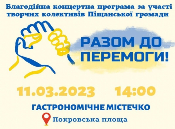 Цієї суботи, 11 березня, з благодійним концертом у Покровському сквері виступлять творчі колективи Піщанського старостинського округу.