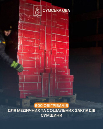 Сумщина отримала 600 обігрівачів для закладів охорони здоров’я та соціального захисту