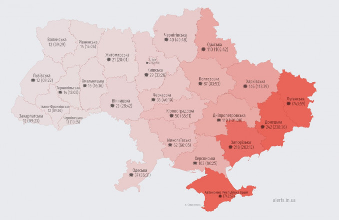 Так, за даними сервісу з 1 по 31 липня 2023 року на Сумщині було оголошено 110 повітряних тривог сумарною тривалістю 4 дні 6 годин 42 хвилини. Середня тривалість повітряної тривоги у липня становила 53 хвилини.