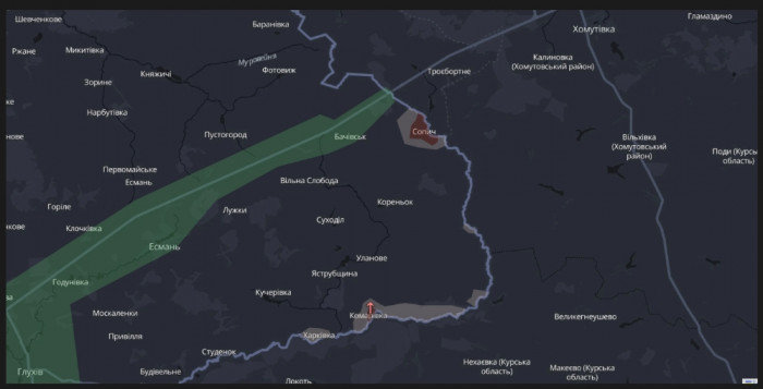 На початку березня солдати РФ вивезли на свою територію із села Сопич Есманьської громади 19 місцевих, які ще залишалися в населеному пункті. Нині на мапі DeepState Сопич, а також частина Комарівки — у “червоній” зоні. Ще понад 16 кв. км — у “сірій”.