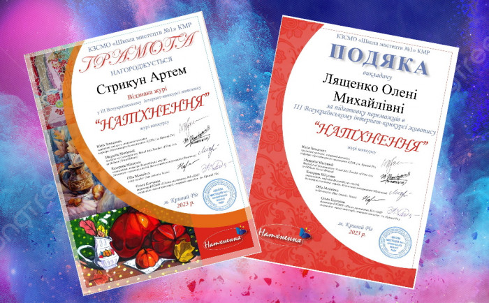 Артем Стрикун отримав відзнаку журі ІІІ Всеукраїнського інтернет-конкурсу живопису “Натхнення – 2023” у номінації «Декоративний живопис» (кер. Олена Лященко).