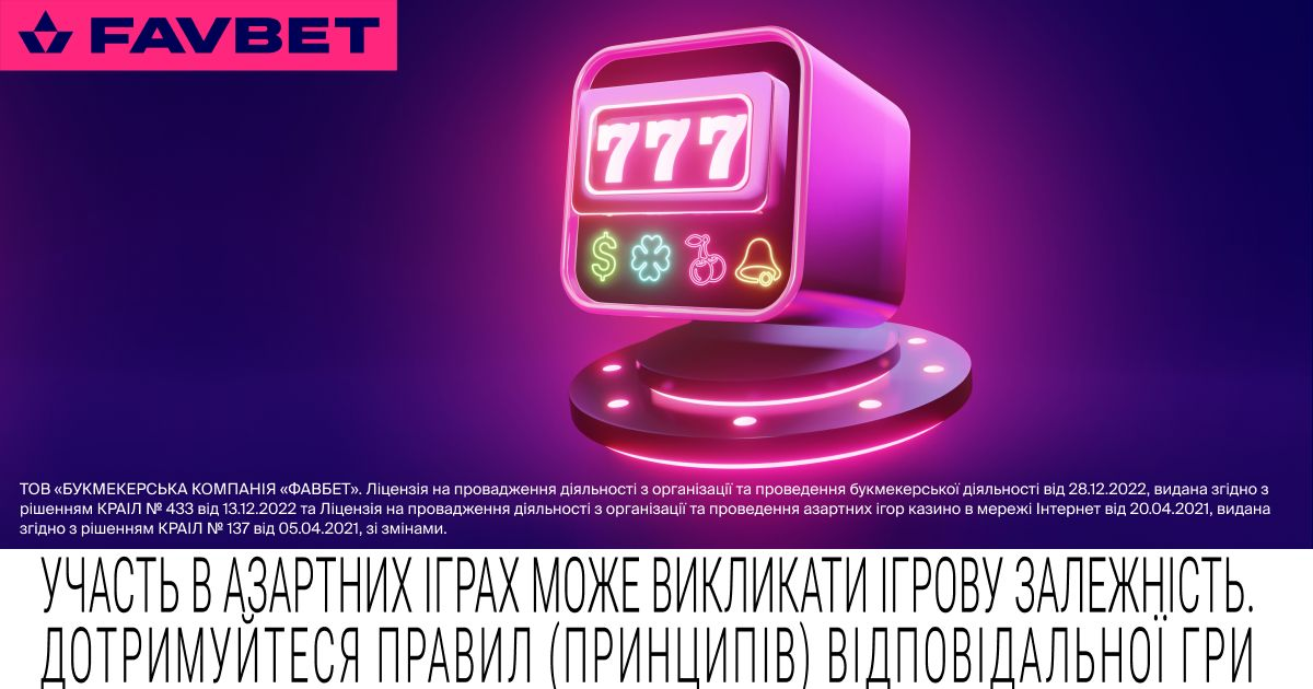 ТОВ «БУКМЕКЕРСЬКА КОМПАНІЯ «ФАВБЕТ». Ліцензія на провадження діяльності з організації та проведення букмекерської діяльності від 28.12.2022, видана згідно з рішенням КРАІЛ № 433 від 13.12.2022 та Ліцензія на провадження діяльності з організації та проведення азартних ігор казино в мережі Інтернет від 20.04.2021, видана згідно з рішенням КРАІЛ № 137 від 05.04.2021, зі змінами.