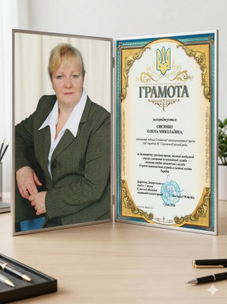 Соціальна педагогиня Глухівської загальноосвітньої школи № 1 Олена Овсянко нагороджена почесною грамотою Департаменту освіти і науки Сумської обласної державної адміністрації.