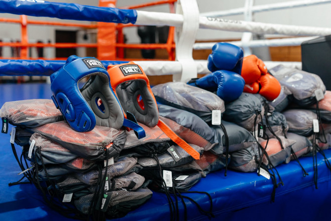 Оновлено екіперування наших юних боксерів. Було передано боксерські рукавички та захисні шоломи. Також відділенню боксу подарували музичну колонку для проведення спортивних заходів.